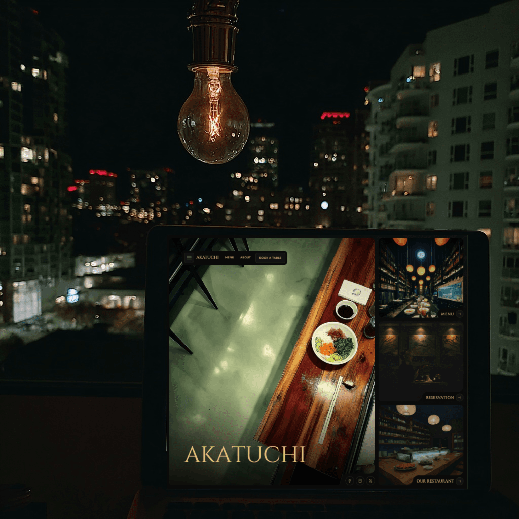 A visually engaging website designed to showcase Akatuchi’s menu and dining experience. The layout balances bold imagery with simplicity, making it easy for customers to explore the menu and book a visit.
