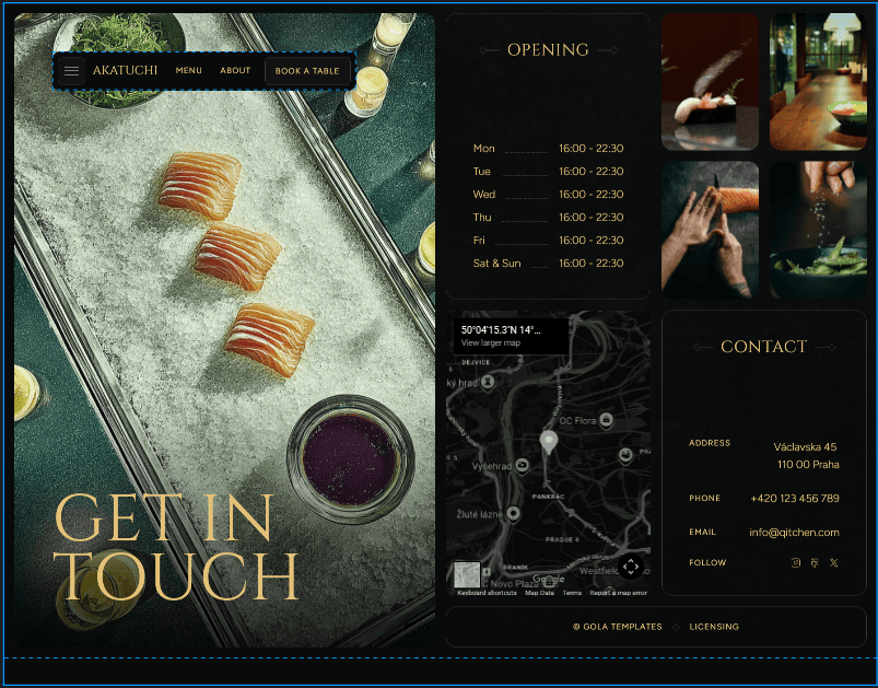 Final adjustments focused on layout balance, visual consistency, and content flow. Attention to detail ensured the site felt polished and aligned with a high-end dining brand.